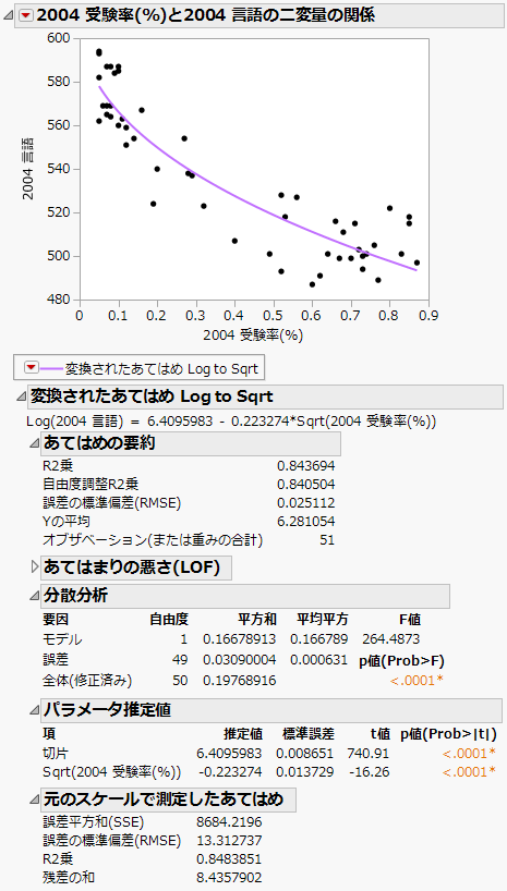 [ヘルプ]>[サンプルデータライブラリ]を選択し、「SAT.jmp」を開きます。