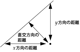 標準的な最小2乗法では、X変数が所与で、Xの関数に誤差を加えたものがY変数であると仮定されます。しかし、Xの測定値にもランダムなばらつきがあるときは、y方向の距離ではなく、直交方向の距離の平方和を最小にする直線を求めた方がよいでしょう。回帰直線への垂線を参照してください。ただし、直交方向に引かれた垂線の長さは、XとYのスケールに左右されます。XとYのスケールをどのように決めるべきかということは、単なるグラフ上の問題ではなく、統計的な問題です。