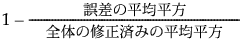 R2乗値は平方和の比でしたが、自由度調整済みR2乗値は、次のように、平均平方の比です。