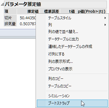 [選択された列の分割]オプションを選択する場合は、どの列で右クリックしたかによって、分析対象となる列が変わる点に注意してください。詳細は、第 “「ブートストラップ」ウィンドウのオプション”を参照してください。
