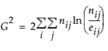 「尤度比」カイ2乗検定の検定等計量は、「検定」レポートに表示されている「(-1)*対数尤度」を2倍した値です。この「(-1)*対数尤度」は、グループごとに応答確率をあてはめたモデルの対数尤度から、標本全体において応答確率が一定であるモデルの対数尤度を引いたものです。尤度比カイ2乗値は、