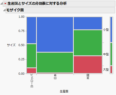 モザイク図の例は、第 “分割表分析の例”の手順に従って作成したものです。