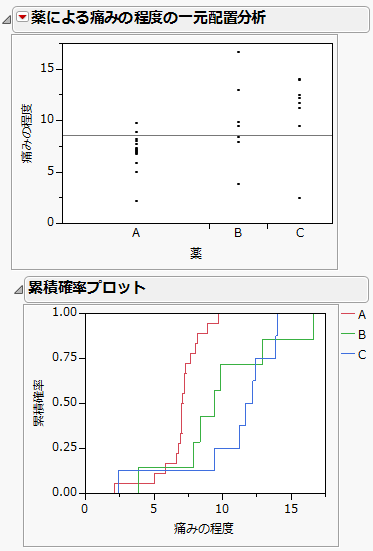 赤い三角ボタンをクリックし、メニューから[累積確率プロット]を選択します。