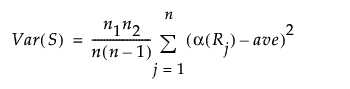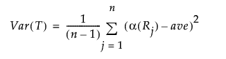 全観測値の平均スコアをaveとすると、 Tの分散は次の計算式で求められます。