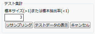 テスト集計パネルに示すように、「標本サイズ(>1)または標本抽出率(<1)」の下のボックスに、標本サイズを入力します。標本サイズは、アクティブなデータテーブルに対する割合、または無作為抽出するデータの行数のどちらかとして認識されます。