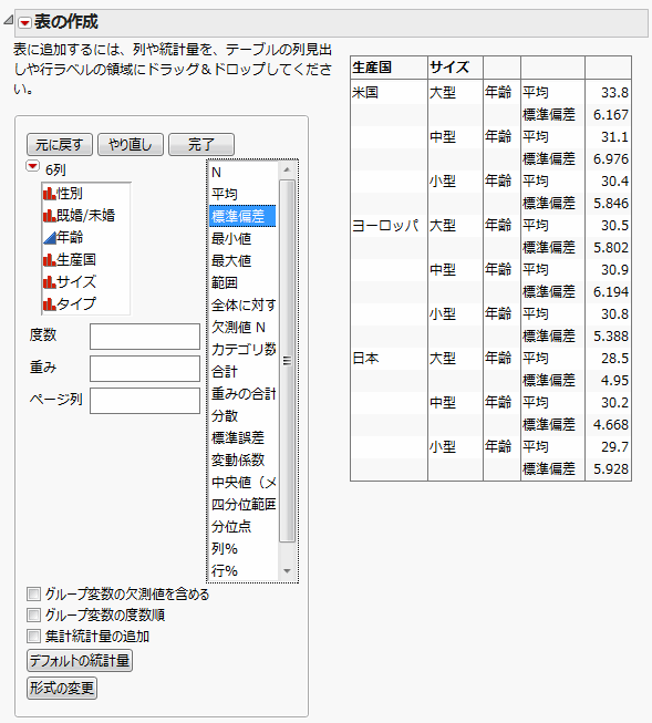 図9.16 「年齢」、[平均]、[標準偏差]を表に追加