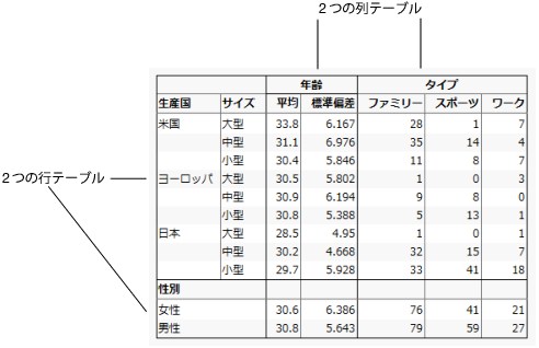 「生産国」をドラッグし、「サイズ」見出しの左側にドロップします。