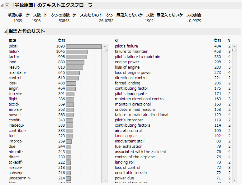 図12.12 「事故原因」のテキストエクスプローラ