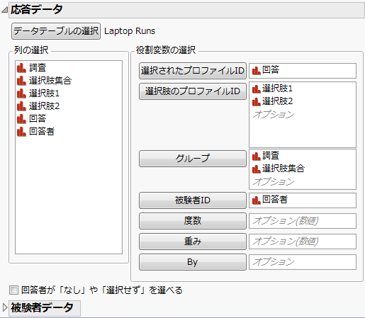 [データテーブルの選択]をクリックし、リストから「Laptop Subjects.jmp」を選択します。