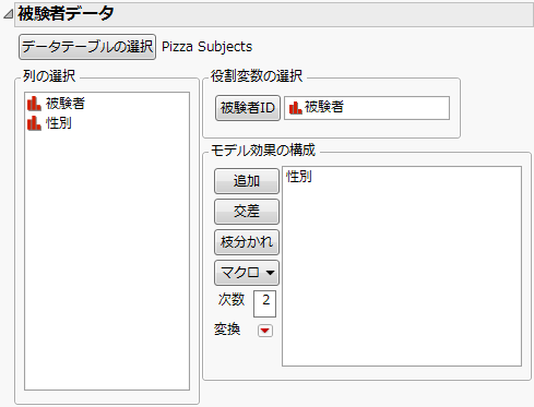 「Pizza Subjects.jmp」を選択し、[OK]をクリックします。