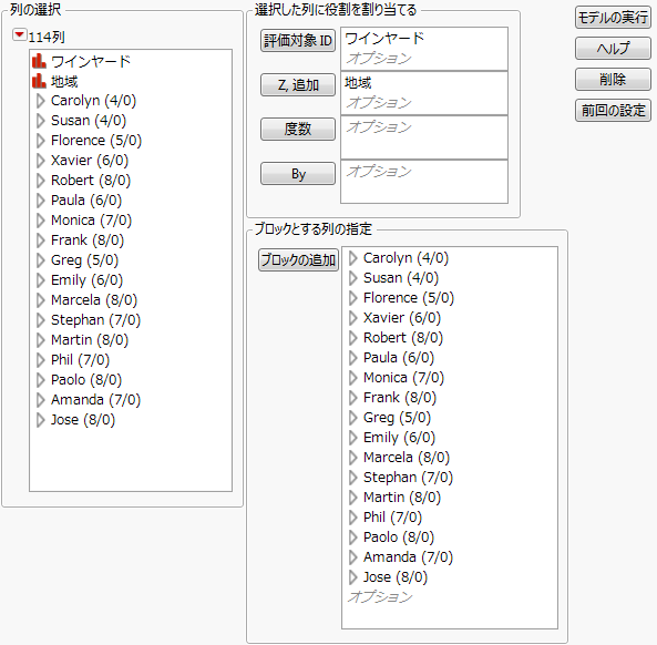 追加変数(supplementary variable)として使用する列を指定します。追加変数は、分析者が関心をもっていて関係を調べたい変数ですが、空間を構成するときの計算には含めたくない変数のことです。