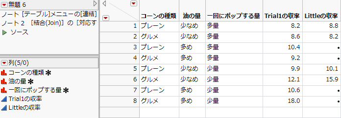 「Trial1.jmp」をクリックして、このデータテーブルをアクティブにします。