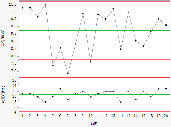 [分析]>[品質と工程]>[管理図]>[XBar]
