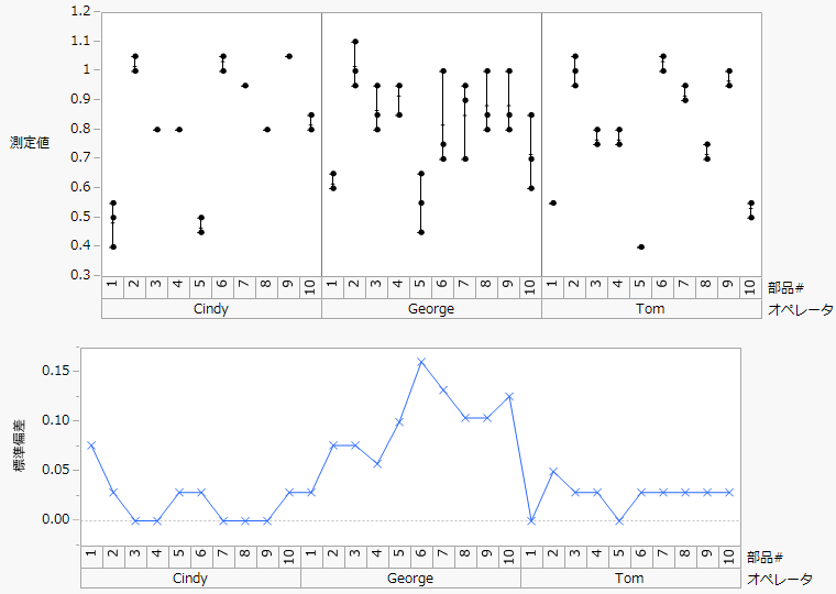 [分析]>[品質と工程]>[計量値/計数値ゲージチャート]