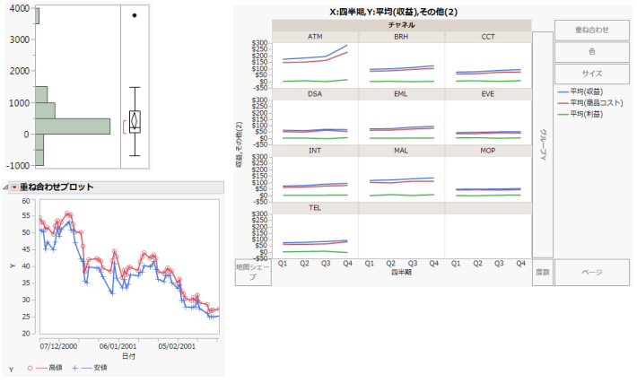対話型のグラフとチャートを作成してデータについて検討し、関係を明らかにする。