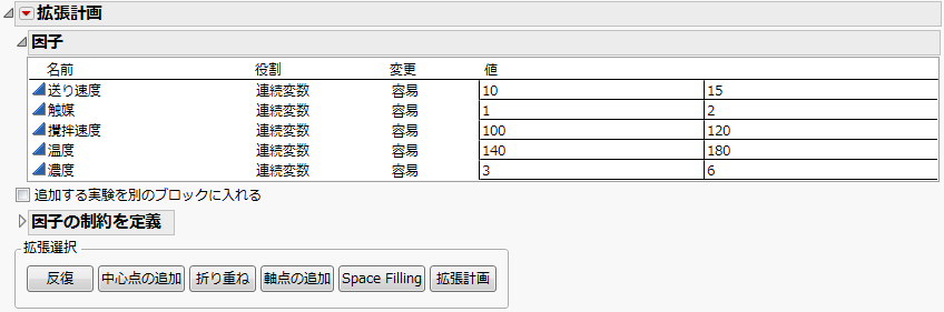 [実験計画(DOE)]>[拡張計画]を選択します。