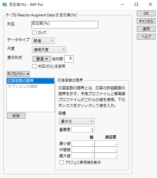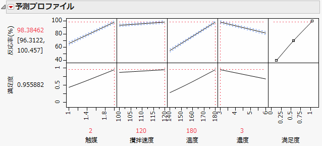 「予測プロファイル」の赤い三角ボタンのメニューをクリックして、[最適化と満足度]>[満足度の最大化]を選択します。
