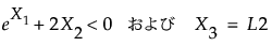 すべての連続変数を含んでいる線形不等式が1つ追加されます。不等式の係数を入力し、不等号の向きを選択してください。また、不等式の右側のボックスに右辺値を入力してください。さらに制約を加えるには、[追加]を再びクリックします。