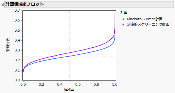 「「Plackett-Burman計画」と比較する計画」のリストから、[決定的スクリーニング計画]を選択します。