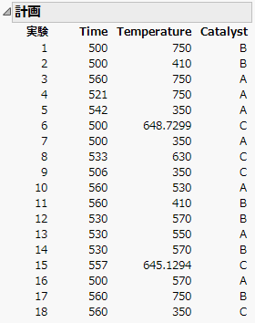 メモ: 3水準の触媒の計画の範囲のプロットは、縦方向のサイズを変更したものです。