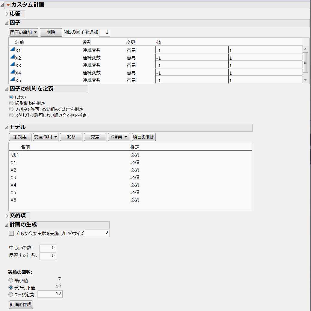 [実験計画(DOE)]>[カスタム計画]を選択します。