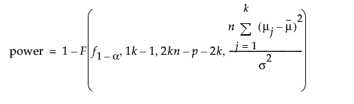 は、想定されるk個の平均の平均。検出力を求めるときにはF分布の累積分布関数が使われていますが、nを求めるときには数値的なアルゴリズムが使われています。