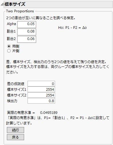 「標本サイズ1」と「標本サイズ2」は空白にしておきます。