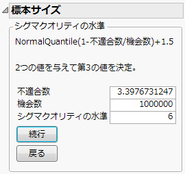 この計算から、機会数を100万としたときにシックスシグマに準拠するためには、「不適合数」が3を超えてはいけないことがわかります。