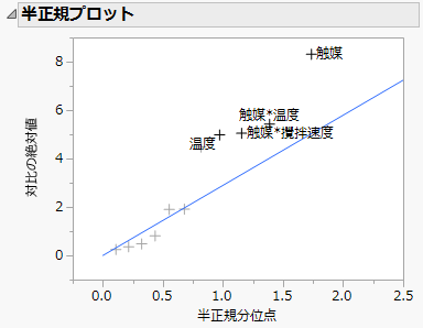 「2水準スクリーニングのあてはめ」レポートの半正規プロット