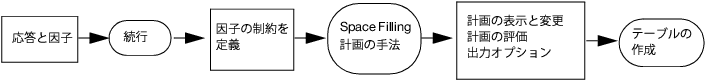 「Space Filling計画」ウィンドウは、計画の手順を踏むごとに内容が更新されます。操作手順は、