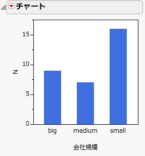 1つのカテゴリ変数を統計量なしでプロットしたチャートの棒グラフは、「会社規模」変数の各水準をプロットしたものです。