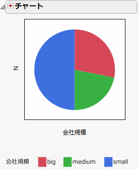 「チャート」の赤い三角ボタンをクリックし、開いたメニューから[円グラフ]を選択します。
