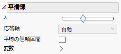 は、データに沿った滑らかな曲線を表示します。平滑線は、デフォルトのλを0.05とし、標準化したX値を使った3次スプライン曲線です。曲線の滑らかさは、スライダでλの値を変更することで調整できます。