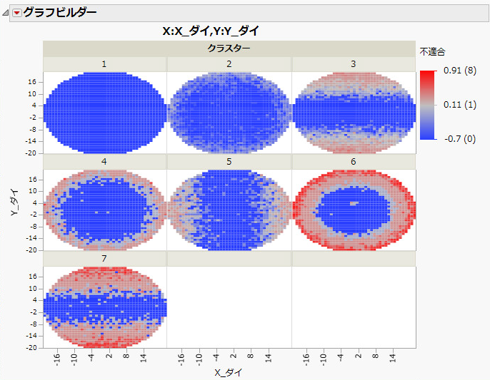 図4.31 各クラスターの不適合の平均で位置を色分け