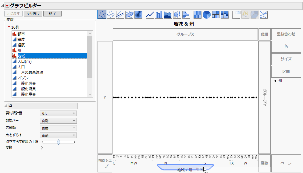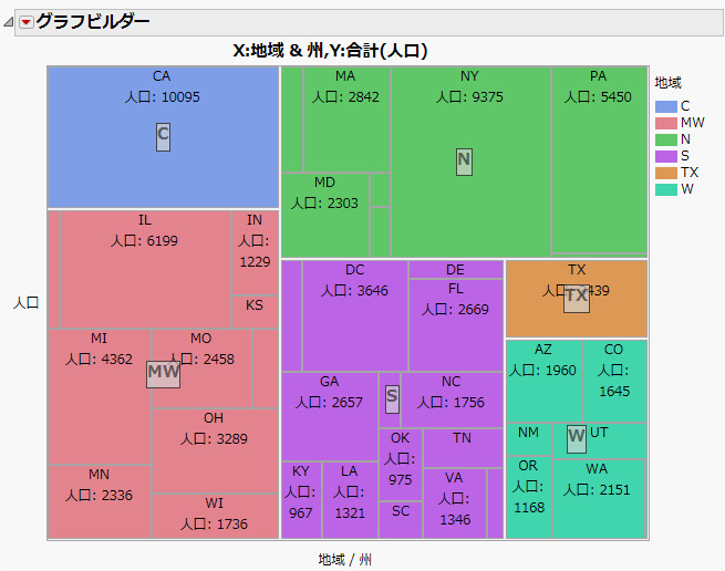 「地域」が上位カテゴリとなり、「地域」内で各州がグループ分けされます。