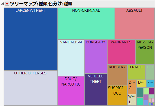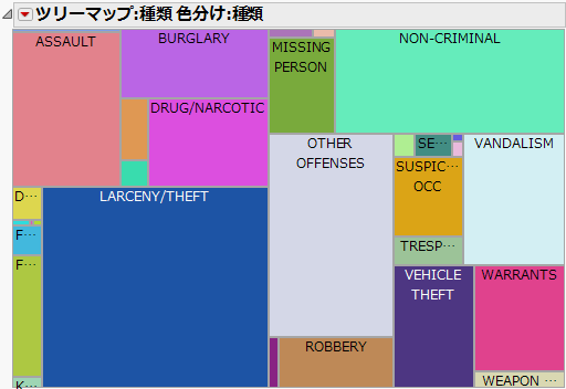 [ヘルプ]>[サンプルデータライブラリ]を選択し、「San Francisco Crime.jmp」を開きます。