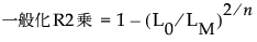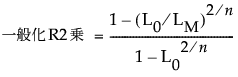。この式で、λは調整パラメータの値、φは撹乱パラメータ。Hui et al.(2015)を参照してください。(分位点回帰では計算されません。)通常のR2乗を、回帰モデル全般で適用できるように拡張したもの。[一般化R2乗]は、あてはめたモデルの尤度(LM)を、切片だけのモデルの尤度(L0)と比べています。そして、最大値が1になるように尺度化されています。二項分布以外の分布では、[一般化R2乗]は次のように定義されます。