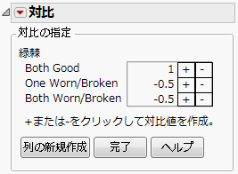「一般化線形モデルのあてはめ」の赤い三角ボタンをクリックし、[対比]を選択します。レポートウィンドウの最後に[対比効果の選択]オプションが表示されます。