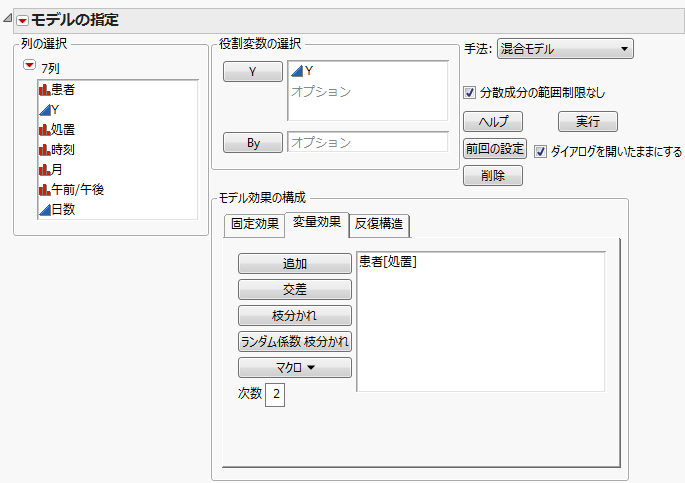 [変量効果]タブをクリックします。