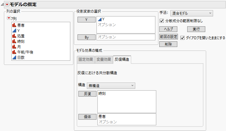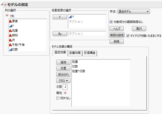 「手法」リストから[混合モデル]を選択します。