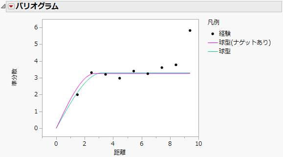 「バリオグラム」の赤い三角ボタンのメニューから[空間的構造]>[球型]を選択します。