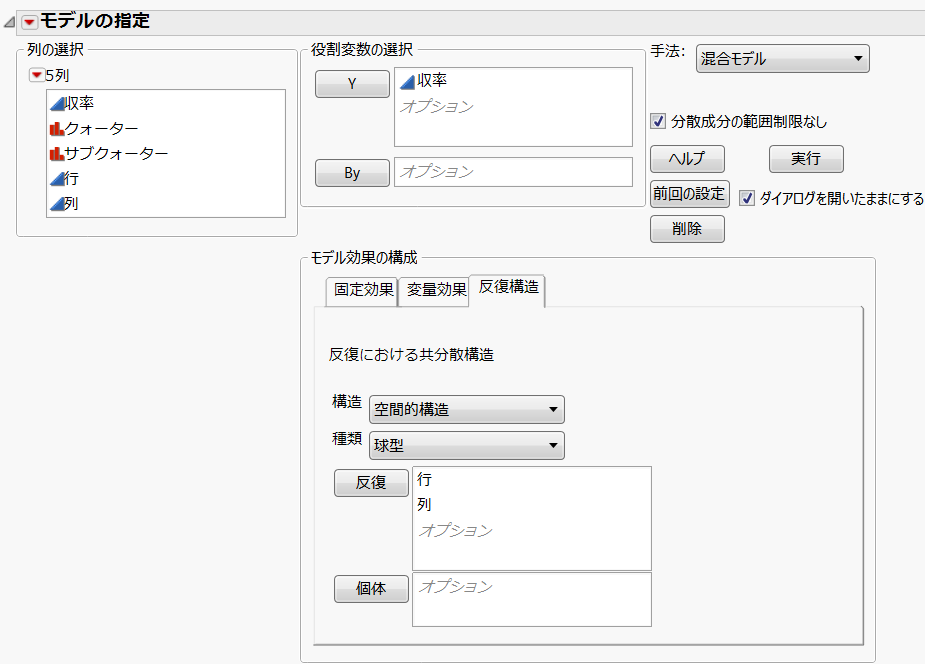 「手法」リストから[混合モデル]を選択します。