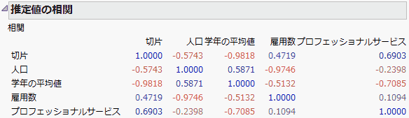 「応答」のタイトルバーにある赤い三角ボタンをクリックし、[推定値]>[推定値の相関]を選択します。