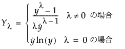 べき乗変換は変数変換の1つとしてよく使われていますが、 Box and Cox(1964)によって、より一般的なべき乗変換が提案されました。Box and Cox(1964)によって提案された変換では、変換式がパラメータλ、によって連続的に変化し、また、変換後の誤差平方和(残差平方和)を単純に比較できるようになっています。Box-Coxのべき乗変換は、次のとおりです。