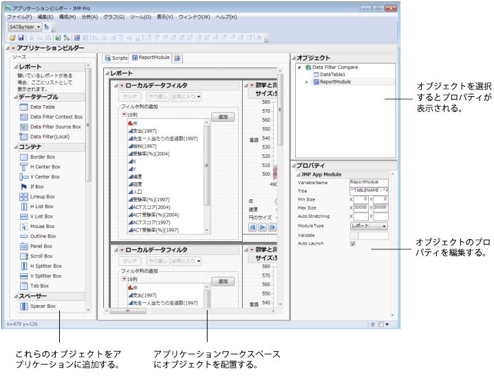 「アプリケーションビルダー」ウィンドウは、アプリケーションビルダーで作成中のアプリケーションです。