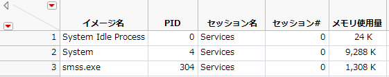 また、cmd.exeを使用せずにプロセス一覧を直接出力させ、データテーブルに読み込むこともできます。