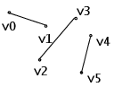 v0からv1、次にv1からv2、以下同様に結んで連結する線分を描きます。したがって、n個の頂点を指定するとn-1本の線分が描かれます。頂点が2個以上ないと何も描かれません。線分を指定する頂点に関する制限はないので、線が交差する場合もあります。