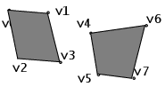 点v0、...、vnを頂点とする多角形を描きます。3個以上の頂点がないと、多角形は描かれません。また、指定する多角形は、線が交差しない、凸状の多角形である必要があります。頂点がこれらの条件を満たしていない場合、結果は予期しないものとなります。