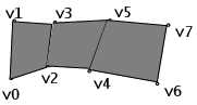 頂点をv0、v1、v3、v2、次にv2、v3、v5、v4、その次にv4、v5、v7、v6、以下同様に結んで複数の四辺形(4辺の多角形)を描きます。頂点の数が少なくとも4個ないと何も描かれません。頂点の数が奇数の場合、最後の頂点は無視されます。