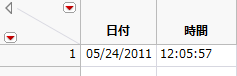 データテーブルの「日付」という名前の列に、"m/d/y"形式の日付時間値が含まれています。ここで、時間だけが含まれる列を作成するとします。次のスクリプトは、2列目の計算式が1列目の「日付」の値から時間を抽出します。